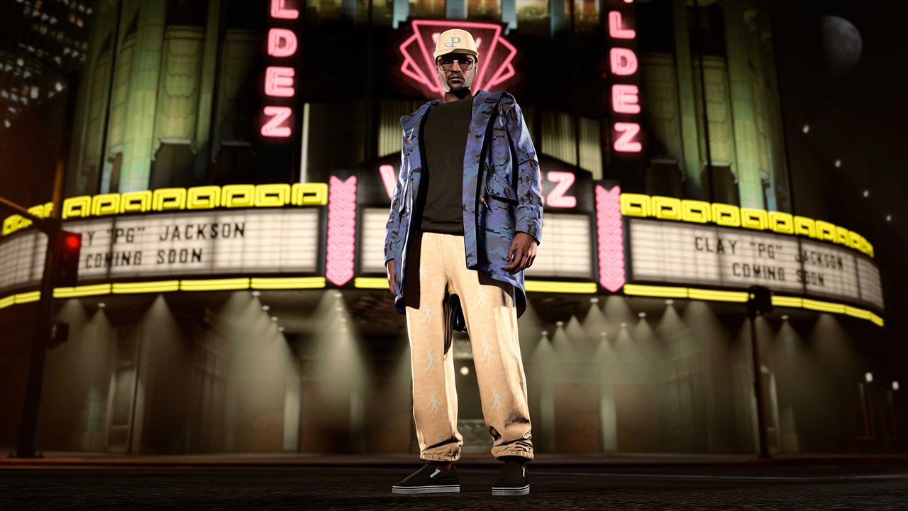 GTA Online – Apricot Perseus Cap – Gold Beat Off Earphones – Apricot Perseus Track Pants – Image 1 – 1280p x 720p – Qualité 50% – Picture by Rockstar Games