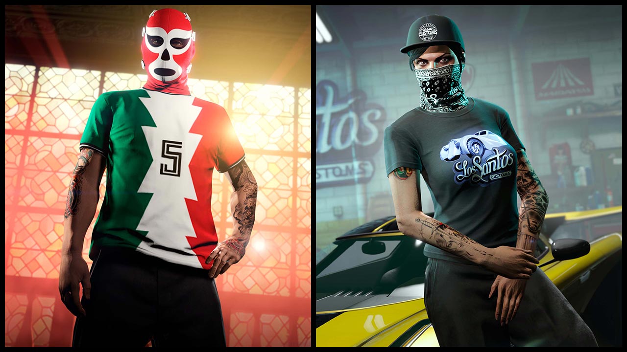 GTA Online – Vêtements – T-shirt et du masque Cinco de Mayo ainsi que le t-shirt et son bandana LS Custom – Image 1 – 1280p x 720p – Qualité 50% – Picture by Rockstar Games