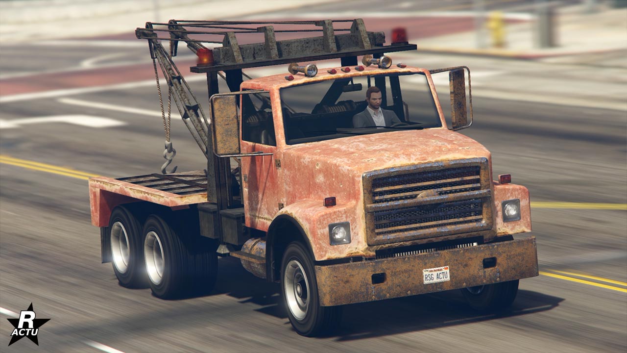 GTA Online – Mise à jour Casse de haut vol – Véhicules utilitaires – Vapid Dépanneuse (Rouillée) – Image 1 – 1280p x 720p – Qualité 50% – Picture by Rockstar Actu