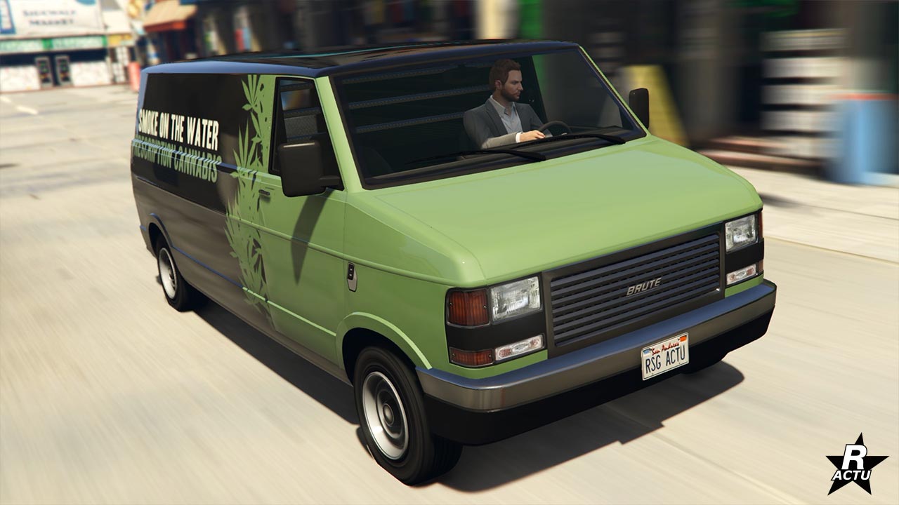 GTA Online – Mise à jour Motos, boulots, bobos – Véhicules – Camionnettes – Brute Pony (Smoke On The Water) – Image 1 – 1280p x 720p – Qualité 50% – Rockstar Actu