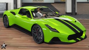 GTA Online – Véhicules – Lampadati Corsita – Personnalisations – Motifs – Double bande de course noire – Image 1.1 – 800p x 450p – Qualité 50% – Picture by RSG Actu